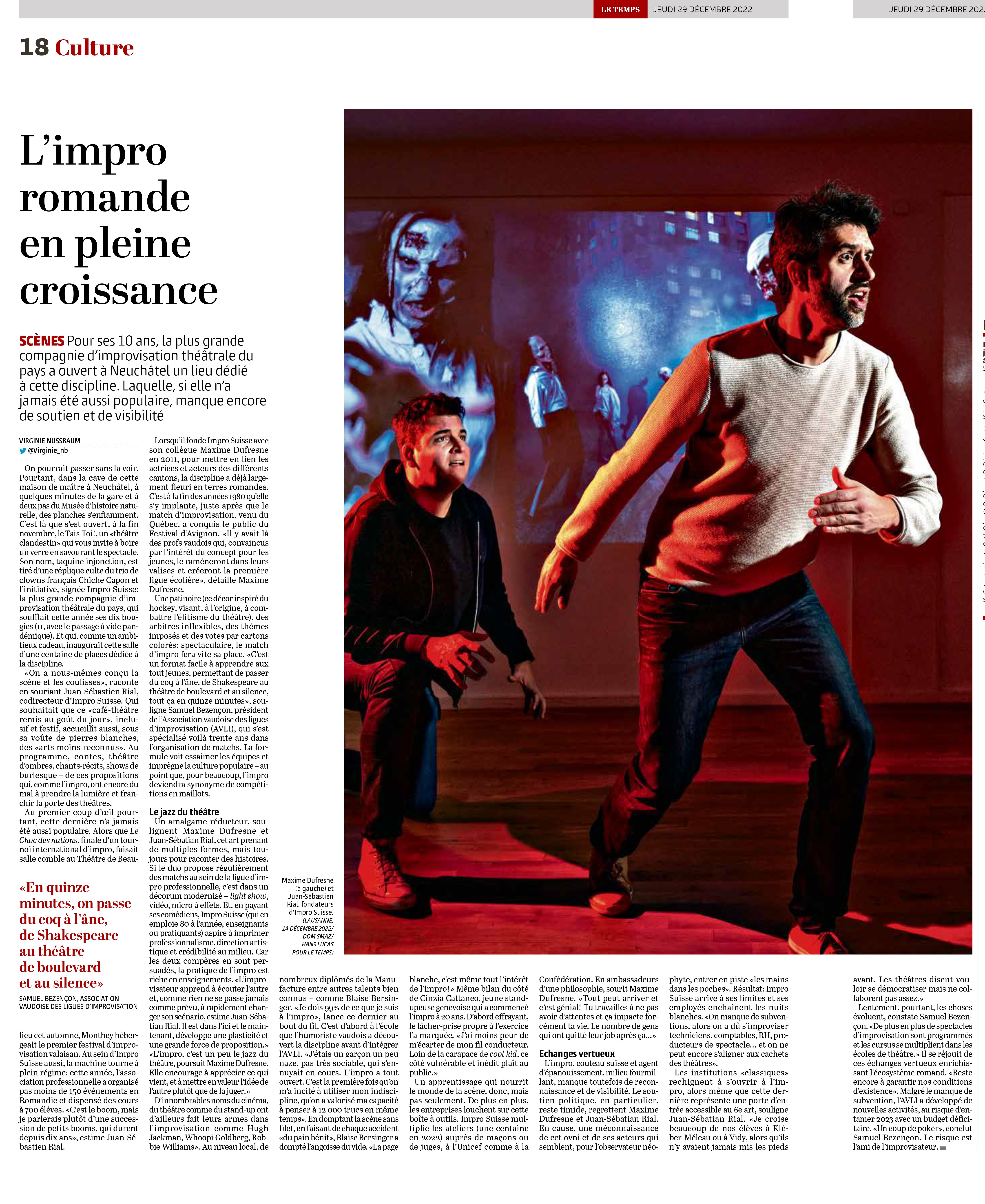 Pour ses 10 ans, la plus grande compagnie d’improvisation théâtrale du pays a ouvert à Neuchâtel un lieu dédié à cette discipline. Laquelle, si elle n’a jamais été aussi populaire, manque encore de soutien et de visibilité